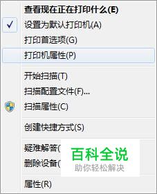 打开需要共享的打印机,选择打印机属性。