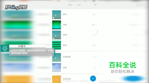 点击打开相册,滑动至相册选项中,长按需要隐藏的相册。