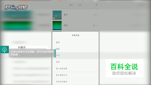 在弹出菜单中点击屏蔽,即可完成对相册的隐藏。