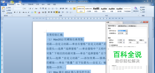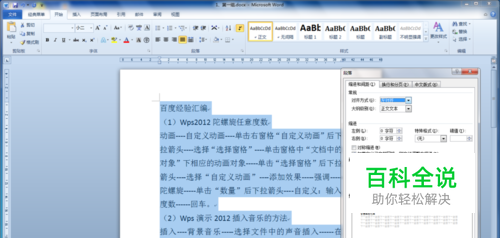 第一步:在Word2010中打开Word文档,在其他不存在格式问题的前提下(比如空白区域、手动换行符等),Ctrl+A全选文档,单击“开始”选项卡,在“段落”组单击右下角的对话框启动器,弹出“段落”对话框。或者选择文档后右击,在弹出的快捷菜单中选择“段落”。