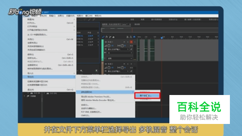 在AU中点击左上方的“文件”,并在文件下方菜单栏选择“导出”-“多轨混音”-“整个会话”,打开导出多轨混音的设置。