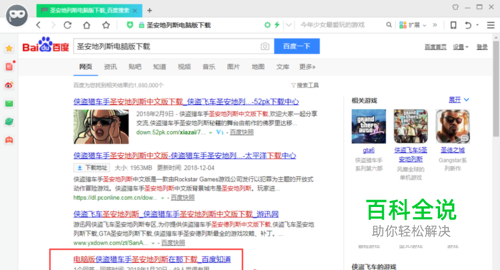 我们首先打开搜索引擎,并在搜索栏中输入“圣安地列斯电脑版下载”,如图所示;