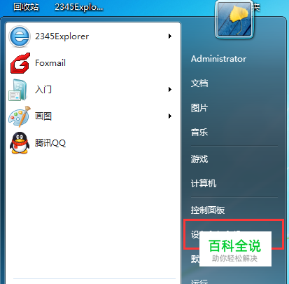 如果上述“硬件”内容没有问题的话,接下来检查下设置问题。 打开“开始”菜单,找到“设备和打印机”打开它。