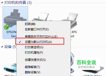 如果打印机显示是“脱机”状态,就点击右键菜单中“连接”, 如果已经连接,那就设置成默认打印机。