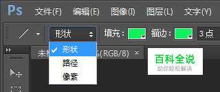 如图,设置直线为形状,然后设置填充颜色和描边颜色