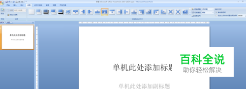 添加一个标题和副标题,然后点击PPT左上方动画选项。注意,此处选择动画是指幻灯片的动画,整个幻灯片会有动画效果可是里面的文字并没有动态的效果。