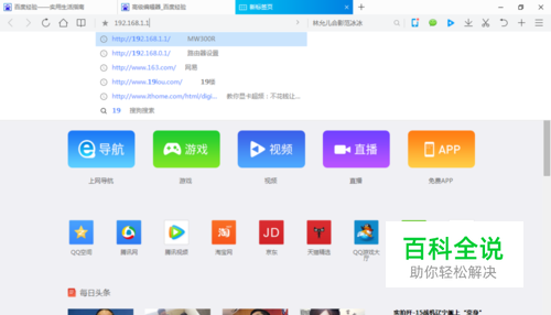 点开浏览器,点击地址栏。 输出192.168.1.1,然后点击回车。