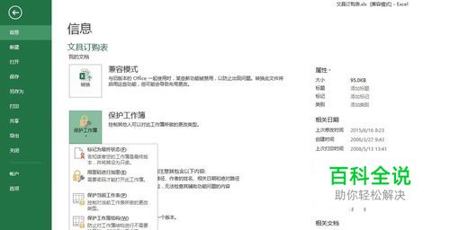 已经设置密码的excel文件,要取消密码也非常简单。按照以下步骤就可以了。首先打开一个已经设密的excel, 选择文件—— 信息—— 保护工作薄—— 用密码进行加密,手动删掉显示在对话框的密码