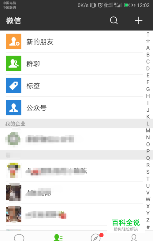 添加微信(不管是扫码或者是用手机号添加的)。对方同意添加后,打开“通讯录”。