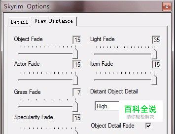 1,景物消退: 建议稍微开高一点,否则很影响游戏美观,也影响实际操作体验.这个选项影响游戏里很多东西的可见距离,比如房屋,围墙,石头堆,木材,水车,路牌等等. 举个例子,你在远处看前方没有东西,跑着跑着突然刷新出来一个房子,再走近一点刷新出来一面墙.这不是很蛋疼吗.建议开8以上,显卡好的直接开15最高2,光照消退: 影响发光物体所照亮的范围,建议开10以上,显卡好的开25以上或者全满,举个例子,一个土匪拿着火炬站在远处,你开高就能看见火炬发出的光把土匪身体和周围景物都照亮了,开低却只能看见一个火炬模型本身的火苗,却没有光线投射到周围.很假不是么.这个选项低了就影响画面真实度了.3.人物消退: 建议开高点,它决定你可见的所有NPC的距离,一般8以上,因为老滚里怪物不多,城里人也不多,所以开满15也没什么关系. 如果你是远程职业,就更要开高了,否则你走着走着会突然读取出来一个怪物.其实怪物早就在那儿了.只是你看不到远处.4.物品消退: 这个是我觉得最没必要开高的,它控制游戏里所有你可以拿起来的,可以放进包里的东西的显示距离,比如满地的酒瓶,锅碗瓢盆,食品,等等无用的东西.因为老滚5没有望远镜也没有狙击枪,不存在让你远处侦查什么的.所以每当你要搜刮战利品的时候必然要自己亲自靠近,所以这些东西在远距离就没必要显示出来增加显卡负担.建议开5,这个距离对于那些小物件来说是很远的可视距离了,再苛刻点开2或者3.5.植被消退: 就是地面的花花草草,调整高低决定显示你周边多大范围的花草,调低的时候很搞笑,你能明显看见花草是跟着你的脚步跑的,只有你身体周围一小块有草,走到哪长到哪,其他地方光秃秃. 但有时候花花草草反而影响采药,影响拾取野外怪物的尸体,我就有过一次弓箭远距离杀人却找不到尸体.草丛太高了.为了游戏画质,不建议开低,否则到处都光秃秃的风景不好看,但开高了有点影响流畅度,几乎不影响帧数,但是影响你操作的流畅度,比如突然转身会感觉到有一点点卡顿.大家自己斟酌.6.远景细节: 影响远处山,建筑,森林的模型和贴图精细度. 话说这都是远处了,要那么精细干嘛.但也不要开低,低就惨不忍睹,最少开个中.显卡好就开高.7.反射消退: 有些东西是带有光泽的,比如金属武器盔甲等等.这个选项决定你在多远距离看具有光泽度的东西时会产生光泽反射的效果.说实话,我觉得这个选项开低完全不影响画质,大家只会看自己角色身上的装备,谁会去看怪物身上盔甲有没有光泽.何况模型贴图本身就有光泽和光影效果.这个选项大家可以自己反复实验看看.也许有的人喜欢看光泽度的场景什么的.8.物体细节消退: 打钩就开启物体细节消退了,追求完美主义的画质就不要打钩,开启之后你将看不到远处一些细小的东西,一般是室内小物件,室外杂草,但我认为那些细小的东西就算不消退你也没看过...谁没事盯着一棵草一个碟子看,只会凭白浪费显卡资源去处理那些你压根不看的东西的细节...