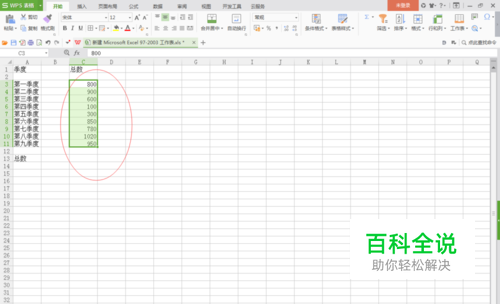 将要求和的列表数据选中好,如下图所示: