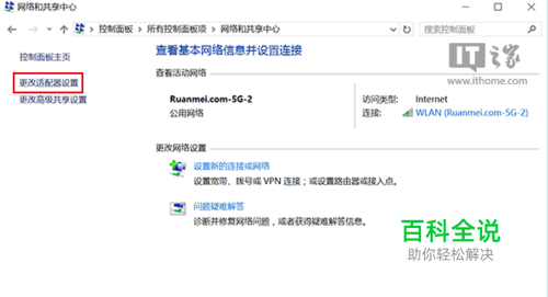 在控制面板中找到“网络和共享中心”,点击左边的“更改适配器设置”