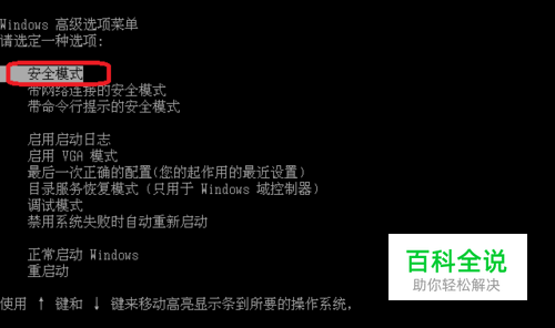 2、如果上一次不行的话可以试试,用箭头选择(安全模式)。按回车进入。这个的意思是您安装软件时蓝屏的,所以才要卸载软件。