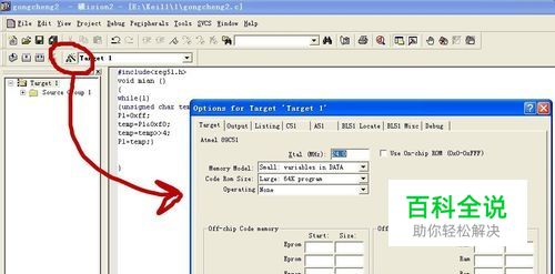 在软件上找到图示的图标(option for target),单击之后,会出现一个图示对话框。