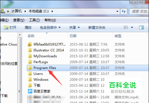 在安装软件的时候,提示安装失败。并警告安装遇到错误。可以在电脑中的c盘删除它的一个文件夹的内容即可。首先打开电脑中的c盘。在列表中找到Program Files的文件夹。