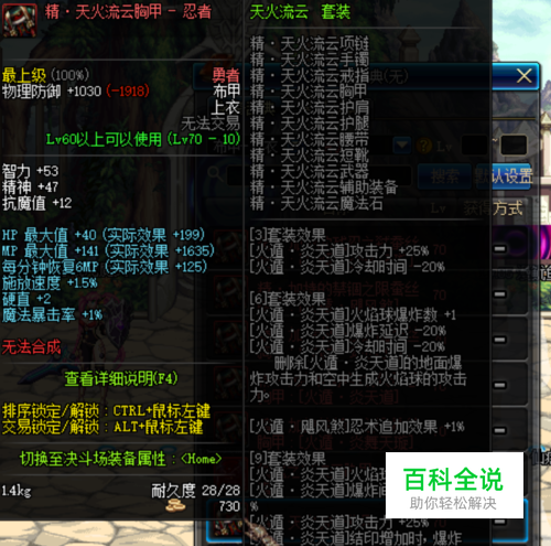 忍者首选的都是天火套装,这套异界套极大的加强了天道这个技能,伤害非常高,可以打安图恩