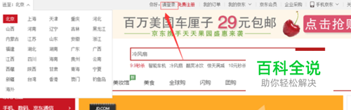 然后点击打开搜索列表的网页后,进入到京东主站的页面,这里我们点击页面上面的登录按钮选项。