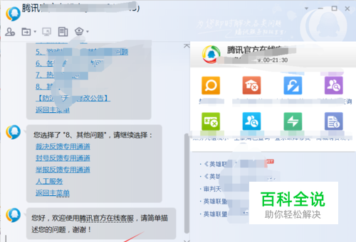 打开腾讯官方在线客服对话框后,根据你需要服务的大类进行选择,如下图所示。