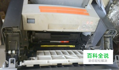 打开以后取出碳粉盒、看图、就是打印机里面那个黑色的东西。
