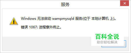 Wampsever 用着用着,突然登陆mysql时,出现禁止访问或者无法连接到数据库,回到服务,去打开 wampmysqld ,发现 ”windows无法启动MySQL服务 错误1067“ ,死活启动不了,咋办?虾苗我来给大家分享下!