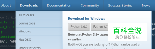 选择Downloads选项,根据操作系统选择适合的版本。(这里我以Windows32位系统版本为例),注:3.5以上版本不支持WindowXP及之前的windows的系统。