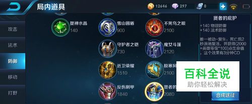 第六件推荐:这时候大多数都是团战,防御很重要,圣贤者庇护可以死尔复活是首选,这里告诉大家一个小技巧,在圣贤者庇护冷却时候卖掉。换其他装备冷却好了再换回来。还可以选不死眼之鸟(对面法术攻击高首选),不祥征兆(适合对面物攻强或者没有法师的情况)
