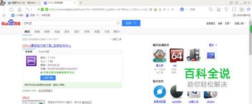 首先打开浏览器输入cpuz,点击搜索选择自己要下载的软件。
