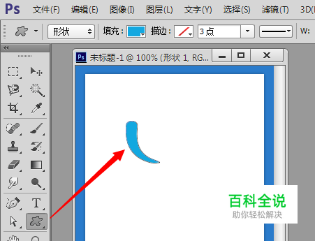 打开PS,新建一空白文档。利用“自定义形状”工具,绘制一个图形。
