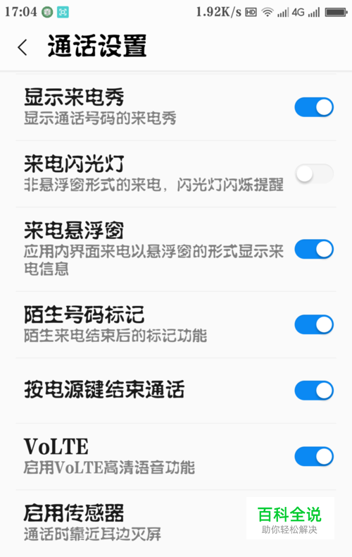 找到VOLTE开关,点击关闭。OK高清通话功能关闭,手机通知栏HD也不显示了。