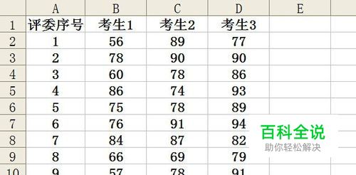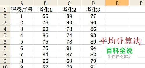 简单平均分算法。求艺术类考生表演成绩平均分。如果10个评委的给分都拿来平均,就是普通的平均分算法。打开一个excel文件,为了方便起见,只录入三个考生成绩。