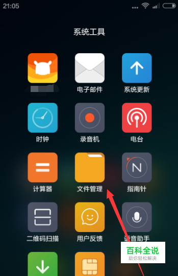 首先要了解一下手机如何管理文件,手机有一个系统工具,你点击系统工具以后,就有文件管理选项。如下图所示,点击文件管理。