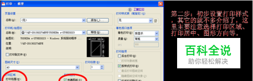 在“打印区域”选项下,将“打印范围”选择中选择“窗口”;将“布满图纸”,“居中打印”两项打√。并选择“图纸方向”。