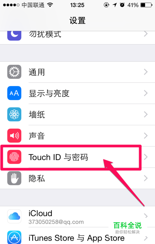 在手机进入到设置这里,选择 touch ID与密码。