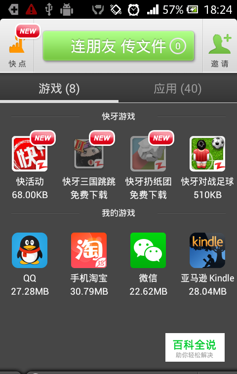 在搜狗搜索或手机的电子市场搜索快牙,要保证苹果机和安卓机都安装快牙这个软件,安装完的图表如下图左上角。