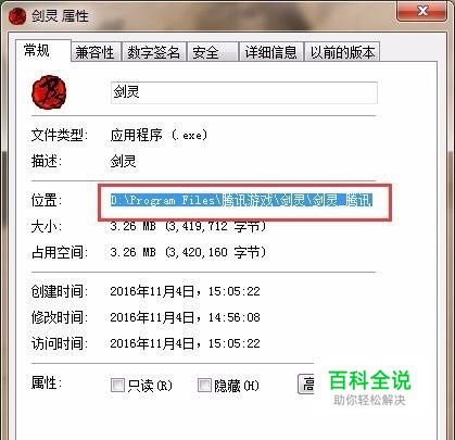 然后桌面剑灵游戏程序图标选择属性找到剑灵的安装文件夹位置