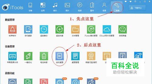 点工具箱,再点实时桌面。