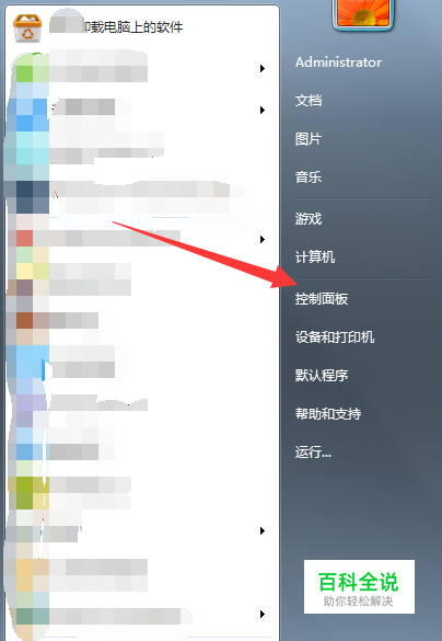 进入安全模式,打开电脑左下角 【开始菜单】,找到 【控制面板】点击打开