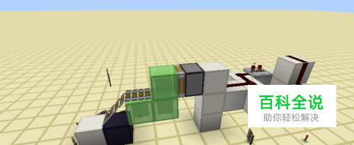 ·放置粘液块和铁轨 按图所示放置三个 粘液块形成L形,并在粘液块和黑曜石上放置两个连在一起的铁轨。这样就做好了准备工作。