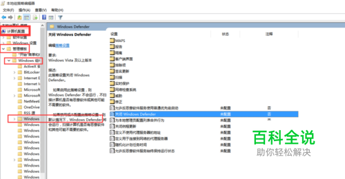 找到 计算机配置--管理模板--Windows组建-- Windows Defender 中的 “关闭 Windows Defender”