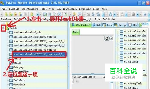 第六步: 在SQLite Expert Professional中展开TaskDb,然后找到左边SQL表中 AcclerateTaskMapxxxxsuperspeed 一项(若有多个,是按xxxx升序排列的,最下面的就是最近的)。