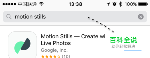 这里以谷歌在 iOS 平台发布的一款名为 Motion Stills 的软件,支持把在 iPhone6s 上所拍摄的 Live Photo 动态照片转换为Gif或视频文件,以便于分享。可以在 App Store 中直接搜索并下载,如下图所示