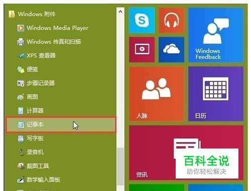 操作方法: 1.点击打开开始菜单 – Windows附件 – 记事本。如下图所示
