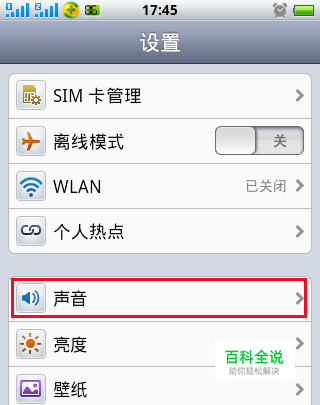 第一步:打开你的手机【设置】界面,里面你会看到【声音】按键,单击此处进入设置。