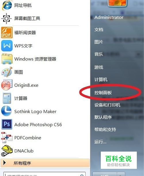 点击电脑屏幕左下角的开始图标。点击“控制面板”