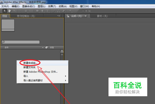 在项目面板上,右键创建一个新的合成组。