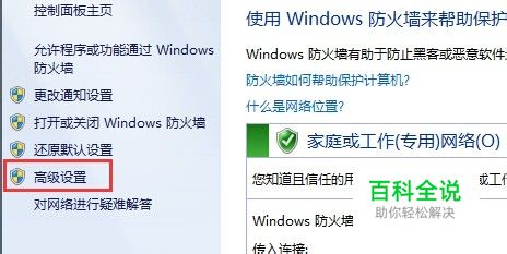 在防火墙设置界面点击左侧的高级设置,然后对出站和入站规则分别进行更改,分别在两个规则中找到文件和打印机共享选项,两个都设置为Allow all connection。