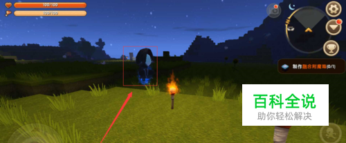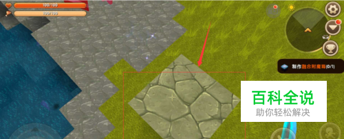 2.移动到地心人旁边,在自己脚下放3个方块(土块、石块、木头都可以)。把自己垫高