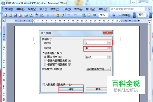 1.打开word2003文本,先制作一张表格,依次点击表格——插入——表格,然后在打开的插入表格窗口中,输入列数和行数(如5列10行)