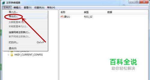 点击注册表对话框的左上角的文件下拉菜单中的导出。