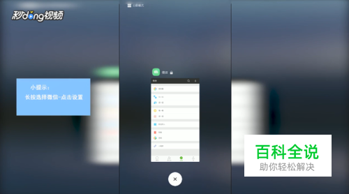 打开微信,点击手机菜单键,长按选择微信,进入设置界面。